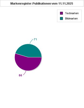 Heute am 11.11.2025 wurden 157 Markeneinträge (86 Textmarken und 71 Wort-/Bildmarken) publiziert.