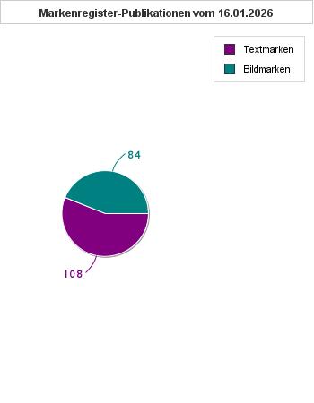 Heute am 16.01.2026 wurden 192 Markeneinträge (108 Textmarken und 84 Wort-/Bildmarken) publiziert.