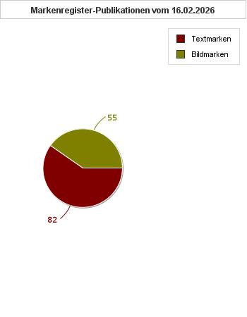 Heute am 16.02.2026 wurden 137 Markeneinträge (82 Textmarken und 55 Wort-/Bildmarken) publiziert.