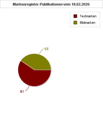 Heute am 18.02.2026 wurden 136 Markeneinträge (81 Textmarken und 55 Wort-/Bildmarken) publiziert.