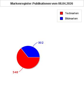 Heute am 08.04.2026 wurden 850 Markeneinträge (548 Textmarken und 302 Wort-/Bildmarken) publiziert.